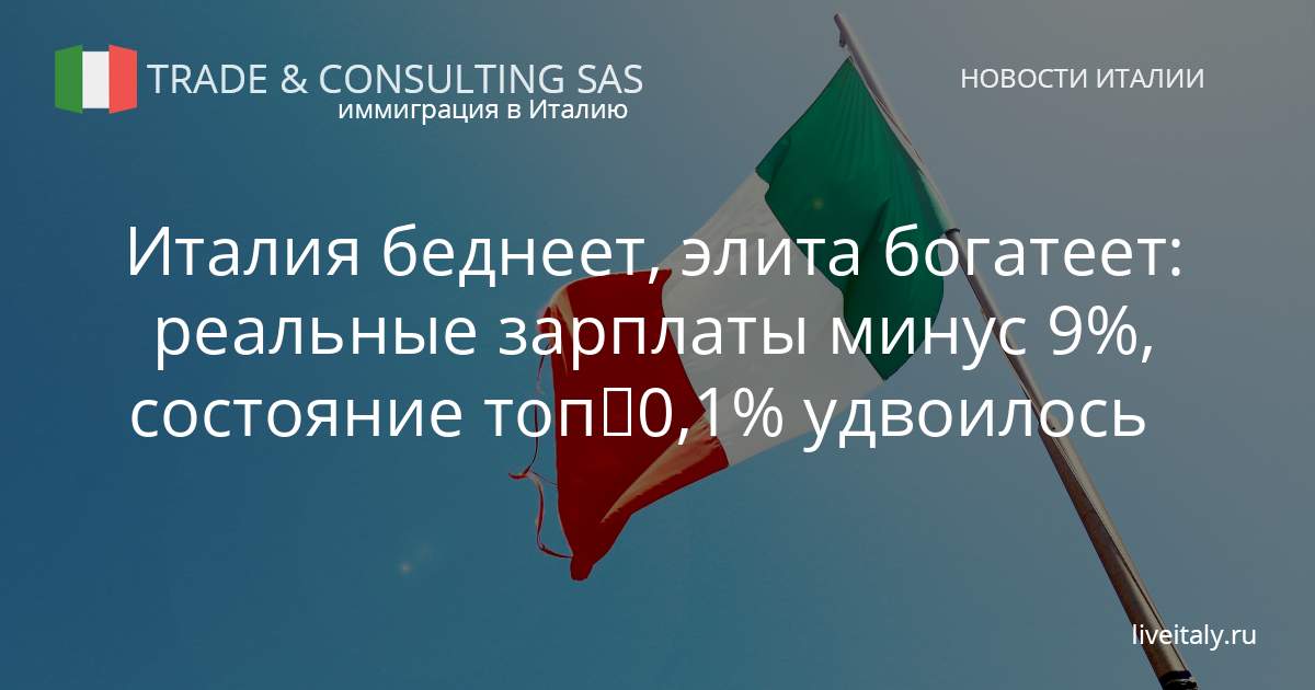 Италия беднеет, элита богатеет: реальные зарплаты минус 9%, состояние топ‑0,1% удвоилось