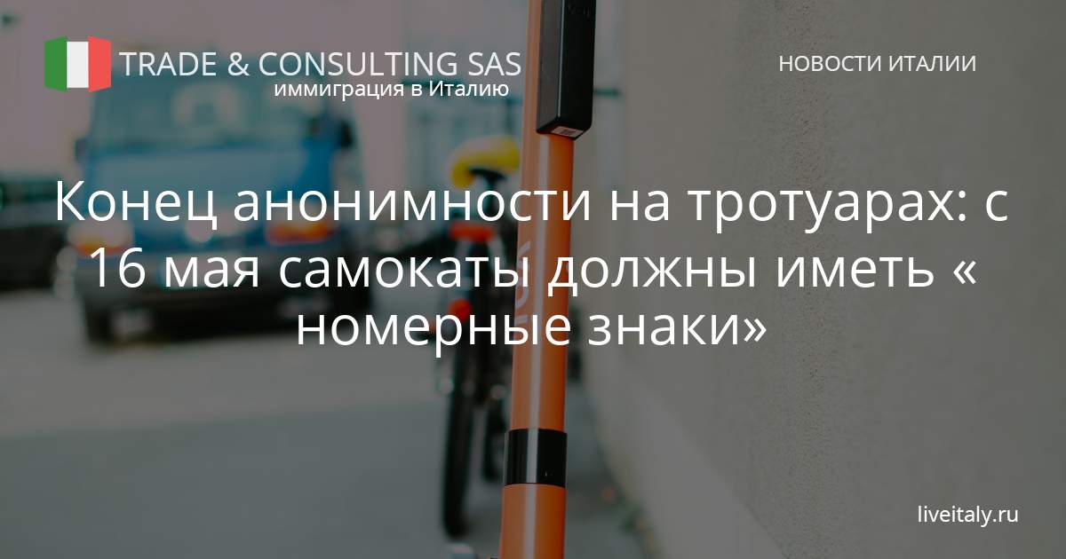 Эпоха безымянных электросамокатов официально заканчивается. С 16 мая каждый самокат в Италии обязан иметь идентификационный знак. Небольшую пластиковую «табличку», которую нужно прикрепить к раме на высоте от 20 до 120 сантиметров от земли. Нет наклейки — готовьте от 100 до 400 евро штрафа.